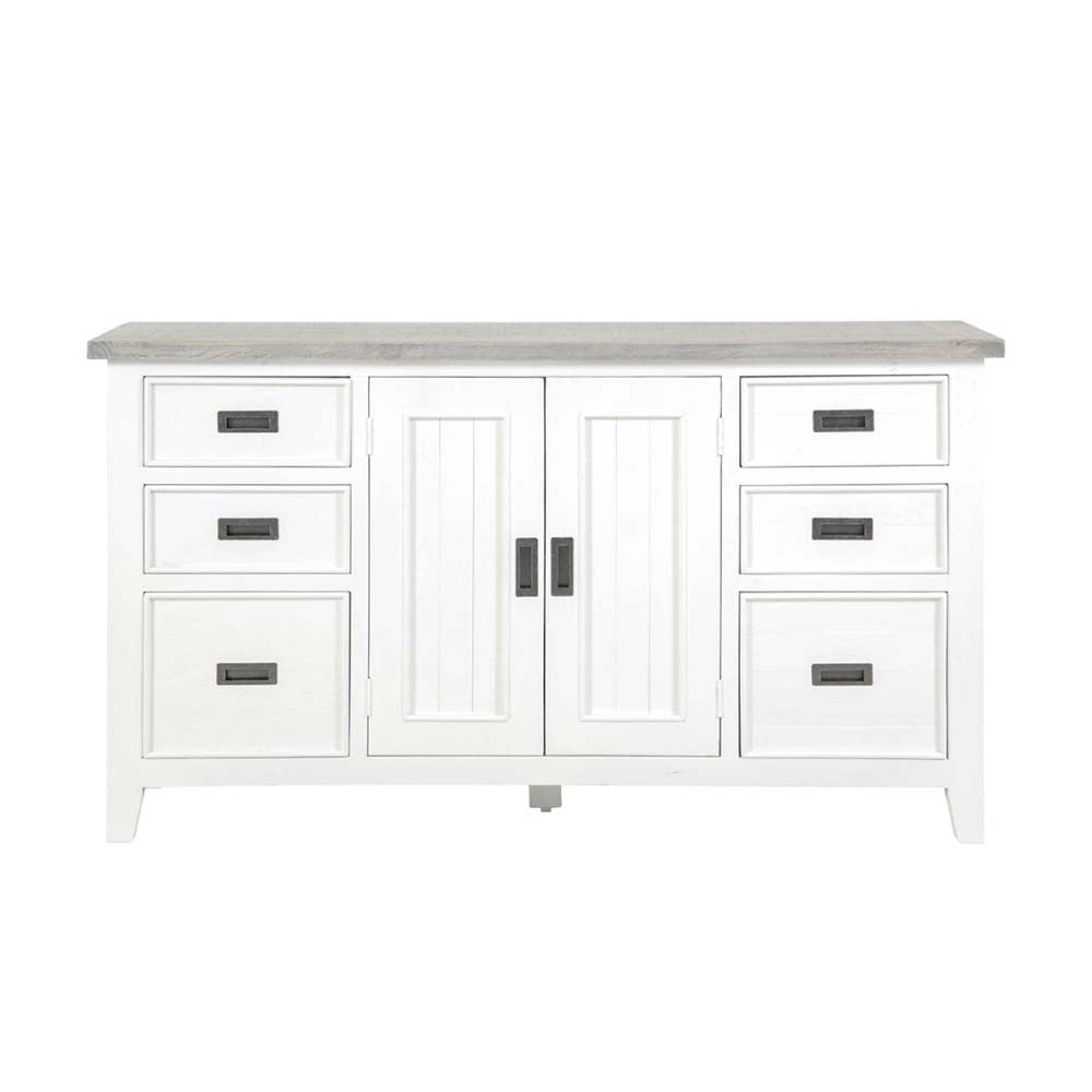 Ashton Buffet Sideboard in Brushed White with Grey Timber Top