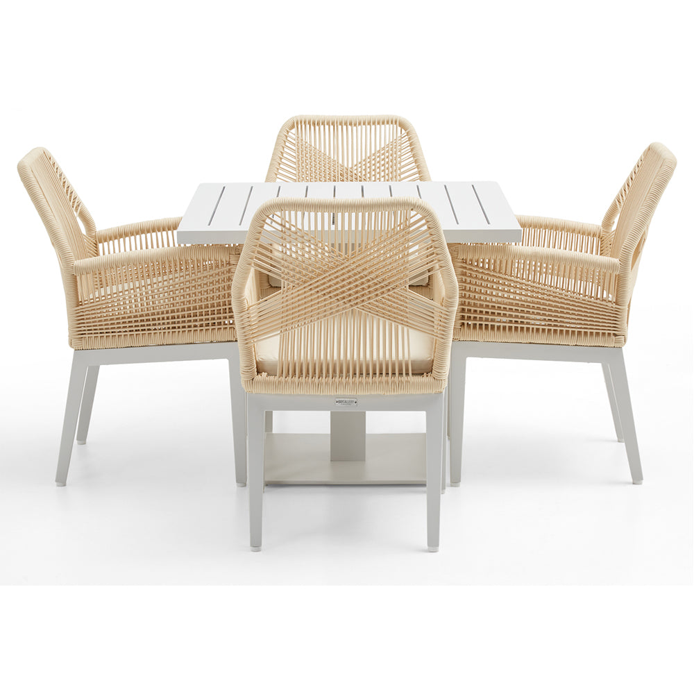 Avoca Outdoor Square Pedestal Aluminium Dining Table with Hugo Rope Chairs
