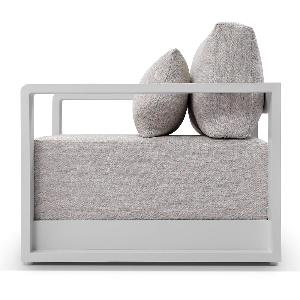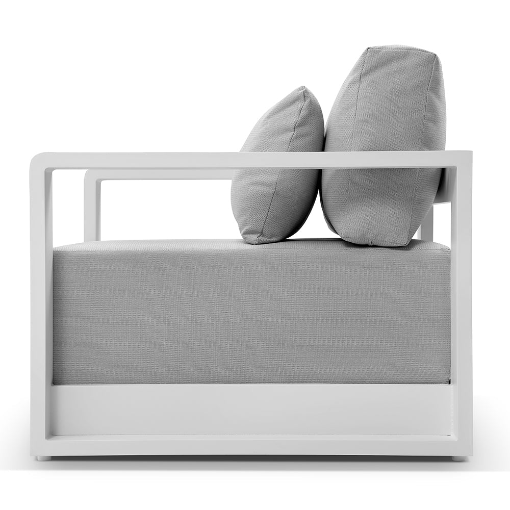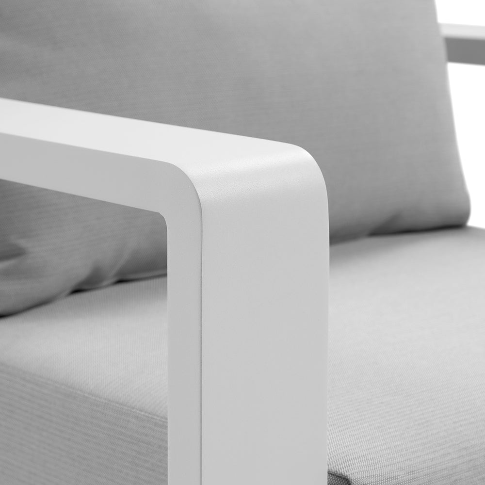 Expertly crafted with an aluminium frame and durable olefin fabric, the Whitehaven Lounge Set is perfect for outdoor spaces. Its quick-dry foam ensures ultimate comfort while the curved arms add a modern touch.?